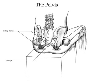 When you sit in this way your pelvis tilts which causes your spine to naturally “stack” and it takes much less effort to stay upright. This happens because you are no longer sitting on your “tailbone” (also known as the coccyx ) and are instead sitting on your “sit bones” (also known as the ischial tuberosity). This allows you to eliminate excess tension and fully inflate your lungs for brass playing.