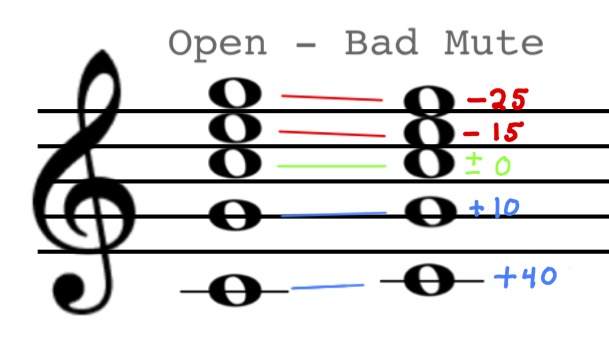 The most well known issue with using a practice mute is the addition of a substantial amount of resistance due to the mute restricting the air exiting the bell. However, practice mutes also tend to cause the range to contract pulling the low register sharp and pushing the high register flat to varying degrees. This condensing of registers affects the distance between partials and can change the amount of effort needed to move from partial to partial making the instrument feel “uneven.” These effects combine to make muted practice feel substantially different than normal playing.